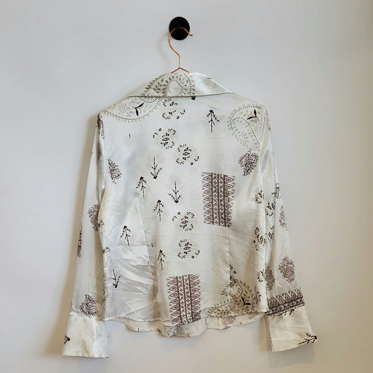 Vintage 70s Boho Print Satin Blouse | Size 12