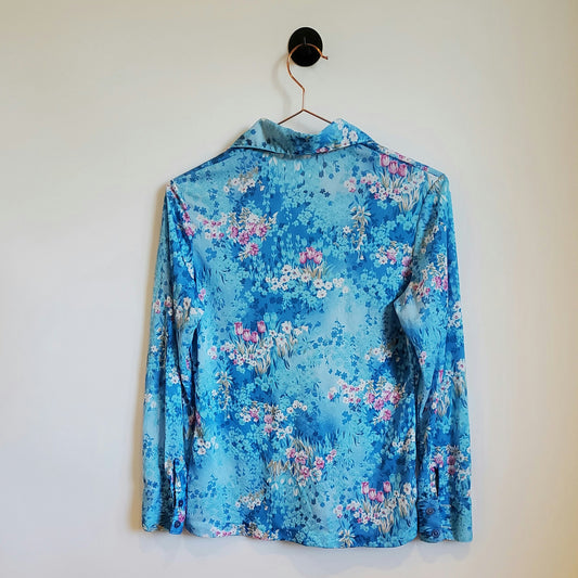 Vintage 70s Ditsy Floral Print Blouse | Size 8
