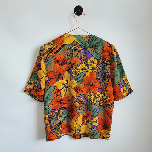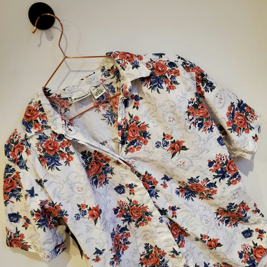 Vintage 80s Floral Short Sleeve Shirt | Size 12