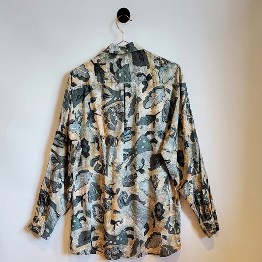 Vintage 90s Funky Leaf Pattern Festival Shirt | Size M