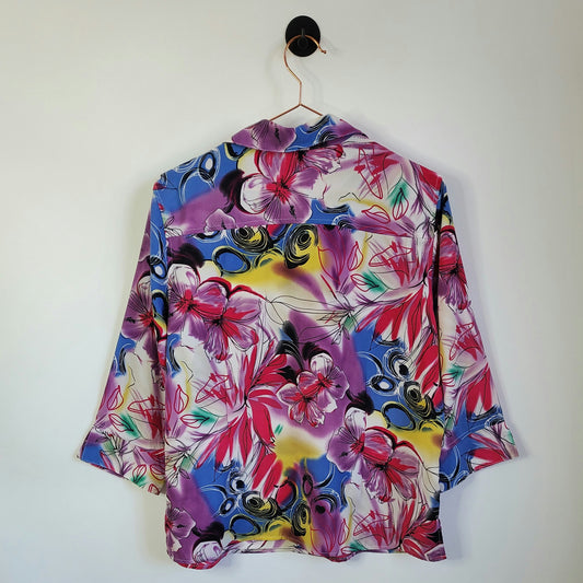 Vintage 90s Floral Hawaiian Blouse | Size 12