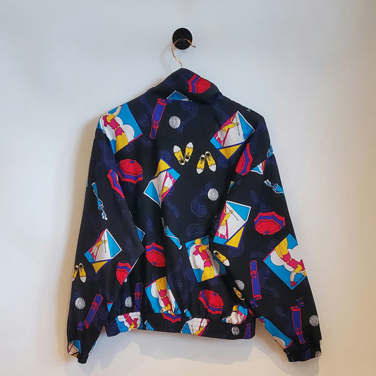 Vintage 80s Golf Pattern Windbreaker Jacket | Size L