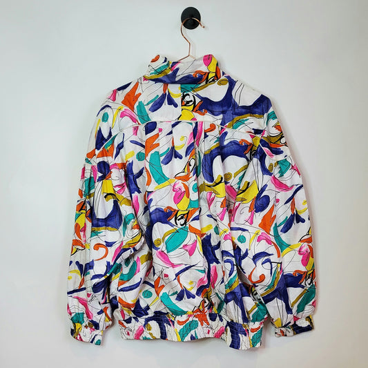 Vintage 80s Funky Print Windbreaker Jacket | Size 14