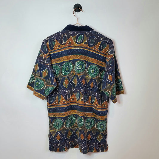 Vintage 90s Funky Print Polo Shirt | Size M