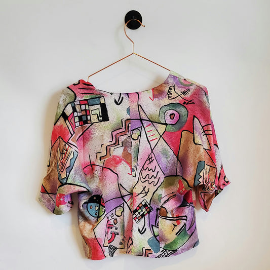 Vintage 90s Funky Print Satin Jacket | Size 14