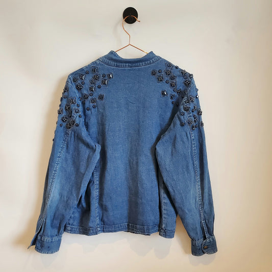 Vintage 80s Beaded Denim Lightweight Jacket | Size 12