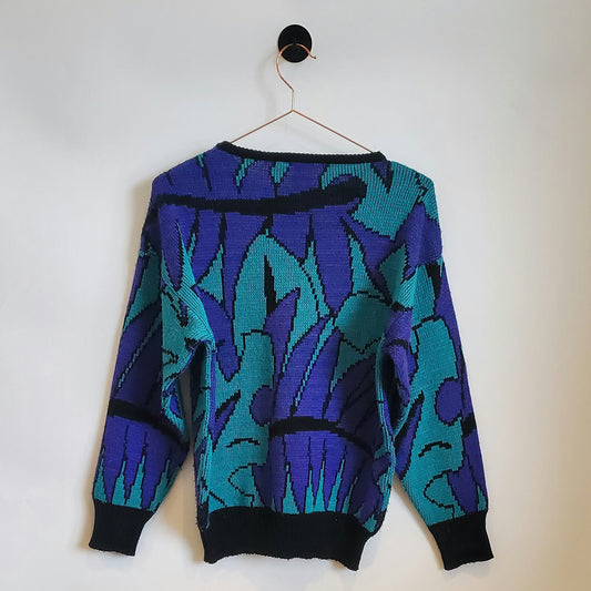 Vintage 80s Funky Pattern Knitted Jumper | Size M