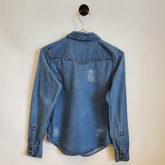Vintage Y2K Distressed Denim Shirt | Size 6