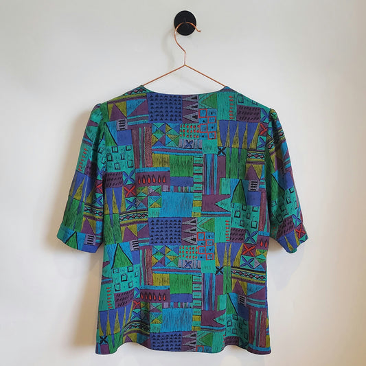 Vintage 80s Hand Knit Funky Pattern Top | Size 12