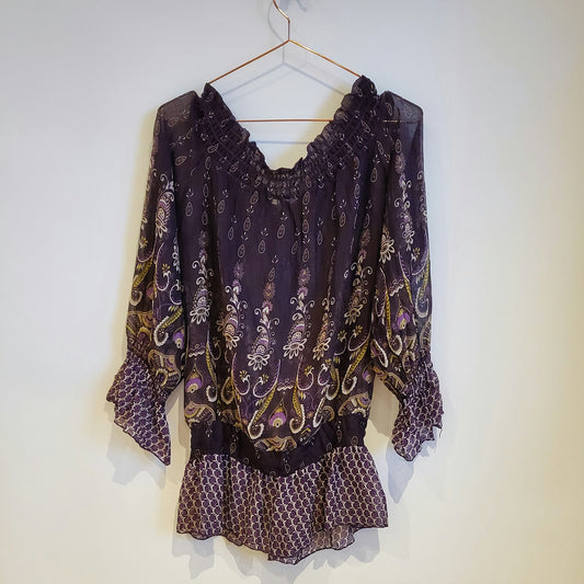 Vintage Y2K Paisley Print Chiffon Top | Size 8