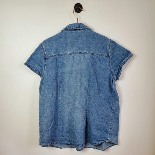 Y2K Maternity Cap Sleeve Denim Blouse | Size 14