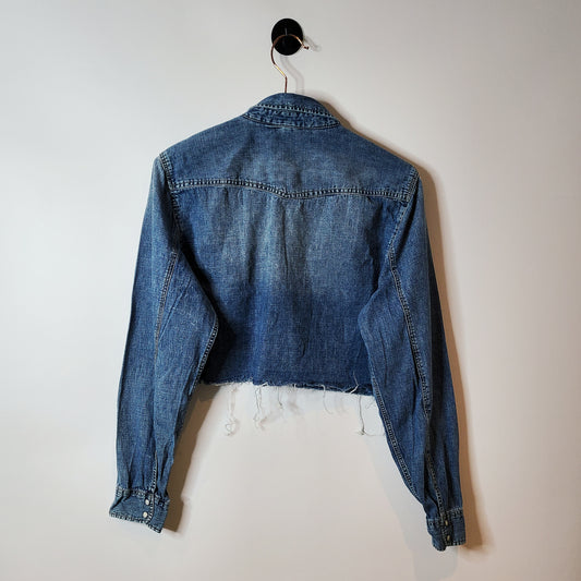 Vintage Reworked Oversized Crop Denim Shirt | Size 10